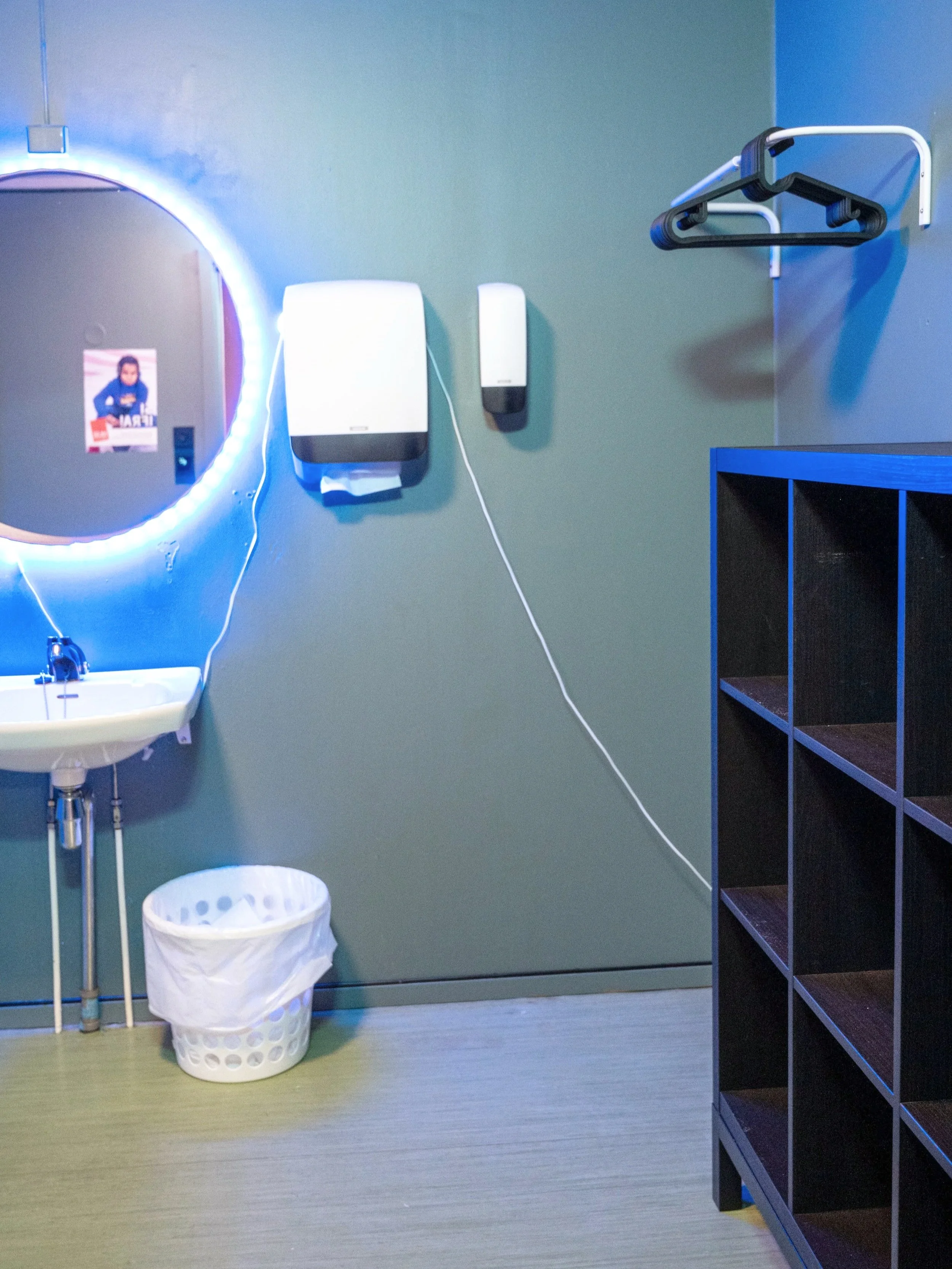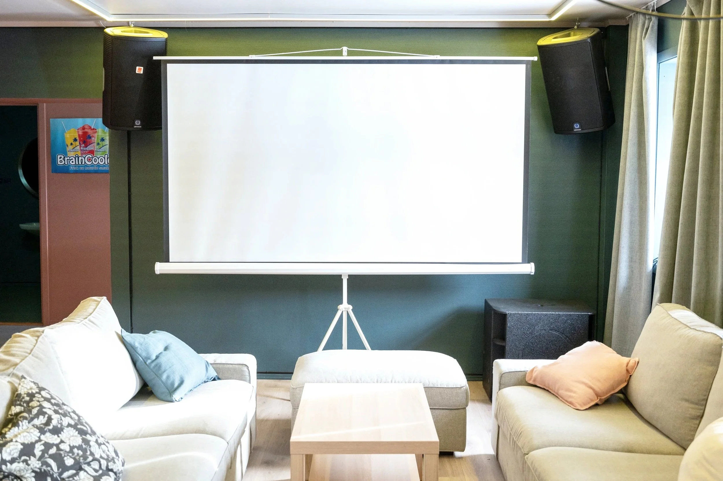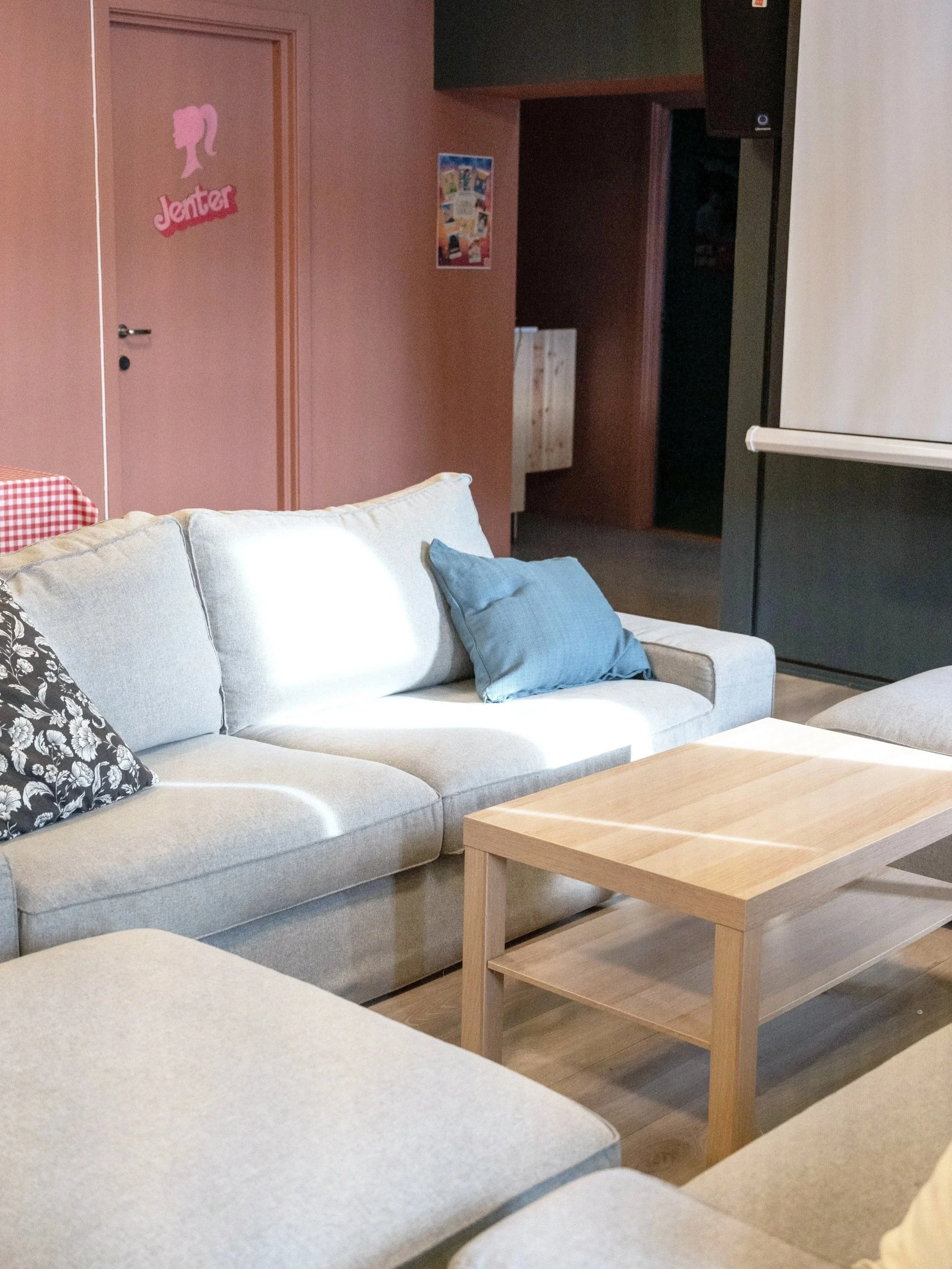 I eitt av fellesområda har vi ein prosjektor med storskjerm som kan brukast til film, spel og andre aktivitetar. Musikkanlegg og LED-lys gjer det mogleg å skape ulike stemningar, alt etter kva som skjer.